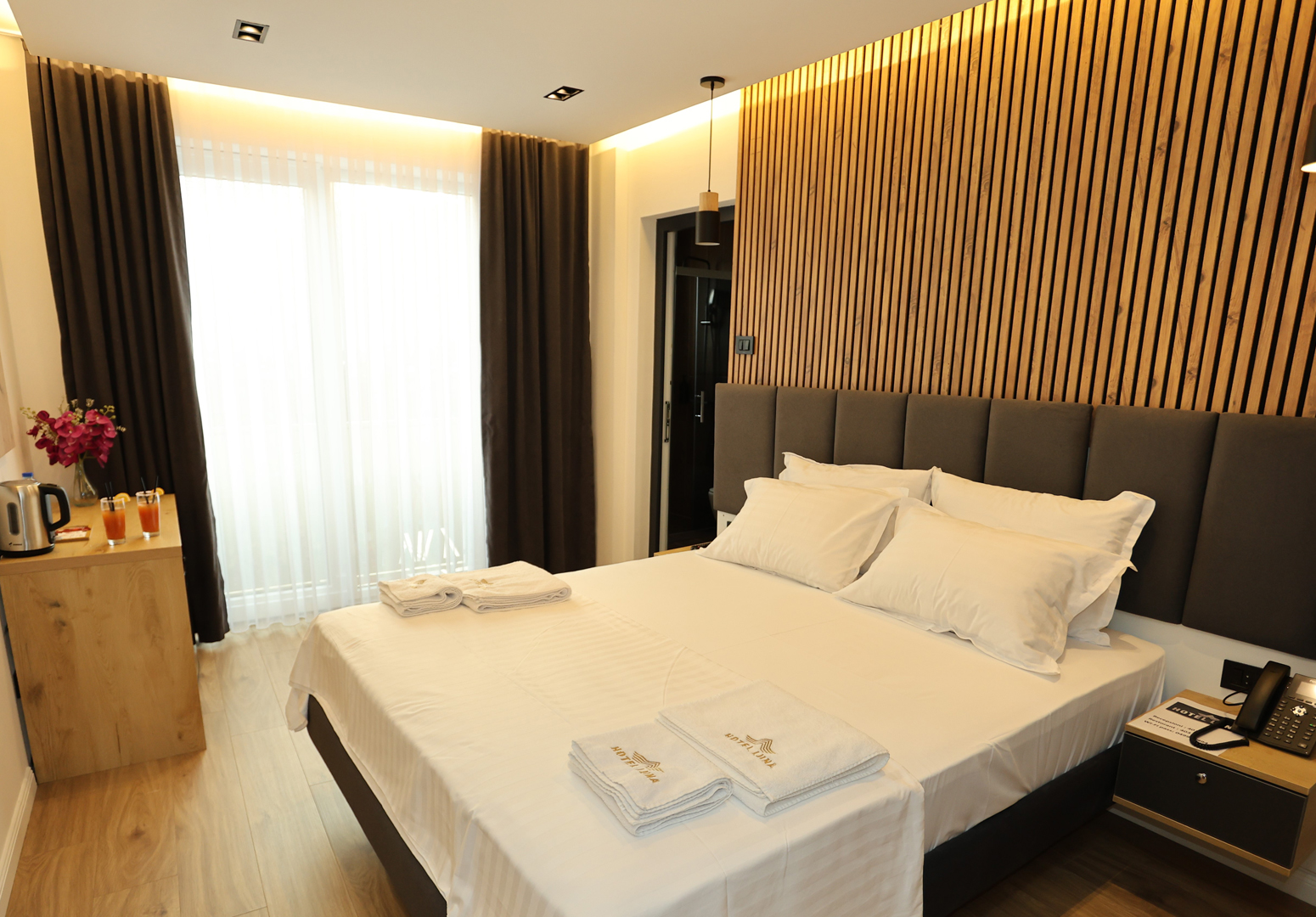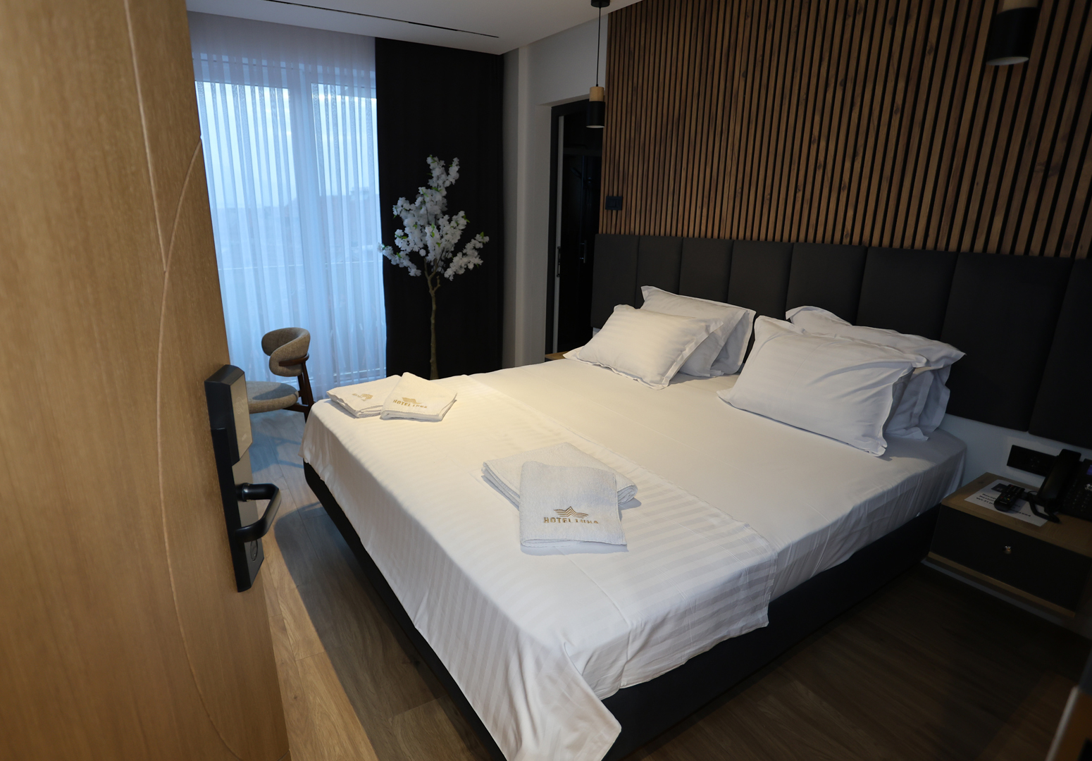 The double room features air conditioning, soundproof walls, a balcony with city views as well as a private bathroom boasting a shower. The unit has 2 beds.